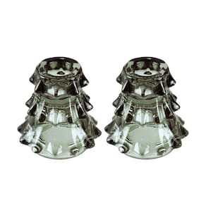 Jogo 2 Porta Velas Natal Vidro Cravejado Pinheiro Verde 7cm