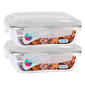 Jogo 2 Potes Vidro Transparente 370ml Tampa 4 Travas Marmita