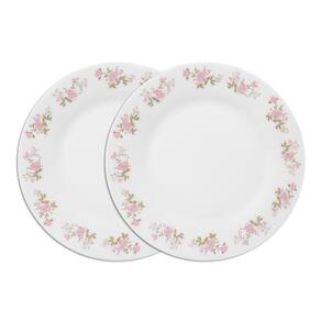 Jogo 2 Prato de Sobremesa de Vidro Flowers Pink 20cm Em Casa Tem