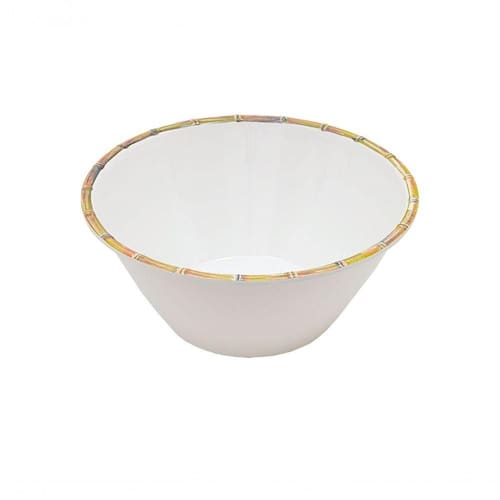 Jogo 2 Saladeiras Melamina Bambu Asper 25 Cm Mimo Style As Saladeiras foram produzidas em Melamina, um tipo de resina similar ao plástico, resistente a altas temperaturas e não quebra com facilidade, produto resistente, durável, de ótima qualidade e possui um excelente custo benefício. É um utensílio bonito, na Cor Branca com detalhes na Cor Bambu nas bordas, é perfeita para compor sua mesa, muita praticidade para o seu dia a dia. Tamanho: 11 x 25 x 25 cm Litragem: 25 cm Peso: 325 gr Dicas de conservação: não utilize produtos abrasivos, apenas água e sabão.
