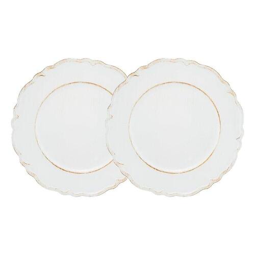 Jogo 2 Sousplat Redondo Patinado Plástico Moon Branco Lyor 33cm