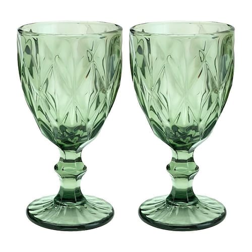 Jogo 2 Taças de Vidro Diamond Diamante Verde 300ml Água Class Home