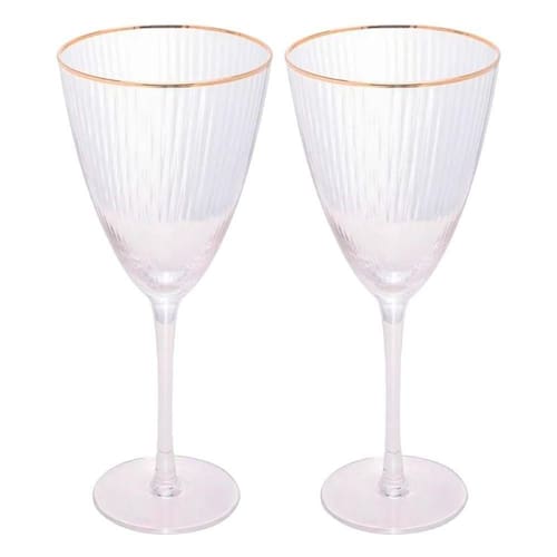 Jogo 2 Taças de Vinho com Borda Dourada Lines Vidro Transparente 400ml Wolff