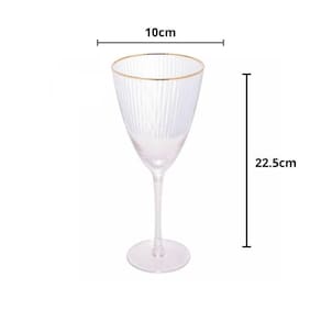 O design refinado apresenta uma borda dourada que adiciona um toque de luxo, tornando-a uma escolha perfeita para ocasiões especiais e celebrações. Feita de vidro de alta qualidade, a taça oferece transparência cristalina e resistência para apreciar o vinho da melhor maneira possível.
