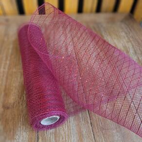 Tela Decorativa de Natal Malha Tule Vinho Bordô com Fio Brilhante – 25cm x 5m