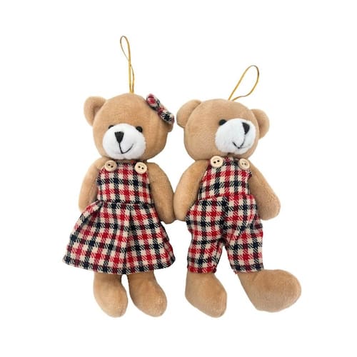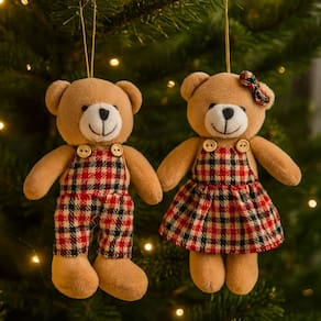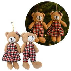Encante sua decoração natalina com este jogo de 2 ursinhos decorativos em pelúcia bege, representando um charmoso casal vestido com roupas em xadrez azul marinho e vermelho. Cada peça acompanha cordão para pendurar, sendo perfeita para compor árvores de Natal, guirlandas, festões ou decorar ambientes internos com um toque tradicional e acolhedor.