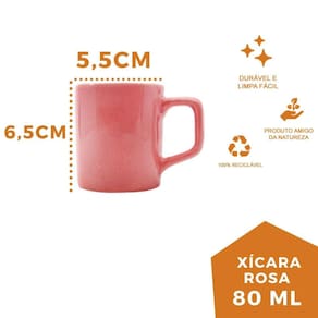 Jogo 2 Xícaras Café 80mL Cerâmica Rosa Mesa Posta