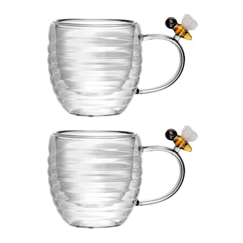 Jogo 2 Xícara de Café Vidro Parede Dupla Abelha Lovely Bee 80ml Lyor