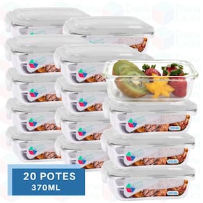 Jogo 20 Potes Vidro Transparente 370ml Tampa 4 Travas Marmita
