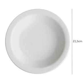 Garantia: 90 dias / Peso: 12,48kg / Cor predominante: branco / Referência: 7891658934440X24 Dimensões de cada prato: 21,5cm (D) x 3,5cm (A); Tipo: fundos; Formato: redondos; Conteúdo: 24 pratos; Material: porcelana.