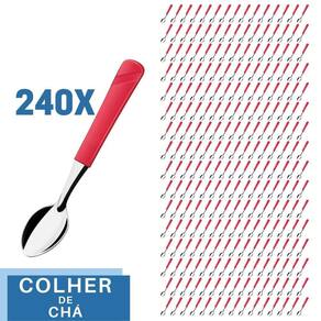 Jogo 240 Colher de Chá Aço Inox Plástico Vermelho Luna