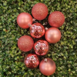 O kit de Bolas de Natal modelo Rosê é o mais novo lançamento da Master Christmas, são bolas de categoria premium, mista sendo gliter, fosca e lisa com 8cm de diâmetro! São ideais para decorar a árvore, assim como guirlandas, festões decorativos, arranjos de natal e diversas outras opções devido sua versatilidade!