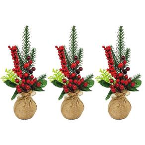 -03 unidades Mini Arranjo Natalino Saco Linho Rústico Decor Enfeite de Mesa 28cm - Yangzi