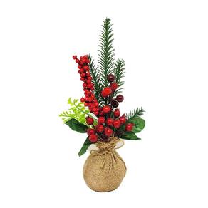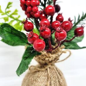 O Arranjo de mesa é ideal para compor sua decoração de Natal, modelo com base em saco de linho aberto rústico, com berries vermelhas e folhagens verdes, proporcionando assim muito mais elegância e bom gosto à peça.