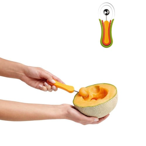 Já a colher menor vai bolear as frutas, como melancia e melão.