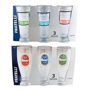 Jogo 3 copos tulipa para cerveja chopp vidro 290ml fratelli Jogo 3 copos tulipa para cerveja chopp vidro 290ml fratelli Descrição: Conjunto de 3 copos tulipa para cerveja de 290ml. Um excelente copo decorado e divertido para beber aquela cerveja ou outras bebidas com Seus amigos e visitas.O conjunto de copos colecionador para cerveja em vidro 290ml 3 peças da fratelli é um lindo utensílio para presentear Alguém. São três copos de 290ml em vidro resistente, de altíssima qualidade que garantem a eficiência e a durabilidade do produto. São ótimos para servir bebidas, indispensáveis e úteis para a sua cozinha. Perfeito para ambas situaçõesa fratelli faz parte do grupo Euroquadros, que vem crescendo potencialmente no mercado nacional, atualmente a empresa é uma das maiores fornecedoras de produtos de Decoração e cozinha do país e vem proporcionando facilidade de acesso e armazenamento adequado, com a da qualidade de seus produtos. Conteúdo da embalagem: 3 peças 03 - copos tulipa de vidro 290ml Ficha técnica: Marca: fratelli Conteúdo: kit 3 copos tulipa de vidro Cor: transparente com estampas variáveis de acordo com a disponibilidade Capacidade máxima: 290ml Composição/material: vidro Peso: 0,710grs caixa Peso unitário aproximado: 0,235grs Dimensões aproximadas do produto unidade - cm axlxp :14,5x7,5x7,5 Pode ser lavado a na máquina de lava-louças: sim Limpeza e cuidados: Lavar com água e sabão neutro utilizando esponja macia, seguido de pano seco. Vai à lava-louças. Não utilizar produtos químicos ou abrasivos na limpeza. Evitar batidas. Dicas de uso e conservação: Para limpeza, remova a sujeira com uma esponja macia, tire todo o resíduo de sabão e seque bem. Não utilize abrasivos ou utensílios pontiagudos. Submeter o vidro a mudanças bruscas de temperatura pode causar choque térmico e danificar seu produto. Evite impactos. Imagens meramente ilustrativas. Marca: Não Informado