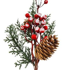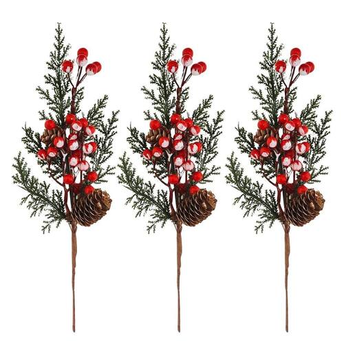 Kit 3 Galhos Pick Natal Folhagens Pinhas e Cereja 30cm