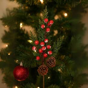 Transforme sua árvore, guirlanda ou arranjos de mesa com o charme deste galho decorativo natalino. O modelo conta com folhagens detalhadas, mini pinhas e cereja com efeito nevado, criando um visual sofisticado e elegante para a sua decoração de Natal.