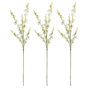 Jogo 3 Hastes Flor Orquídea Chuva de Ouro Branca 50cm