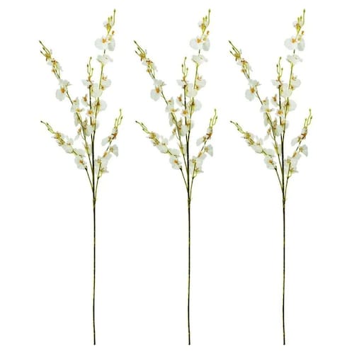 Jogo 3 Hastes Flor Orquídea Chuva de Ouro Branca 50cm