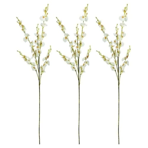 Jogo 3 Hastes Flor Orquídea Chuva de Ouro Branca 50cm