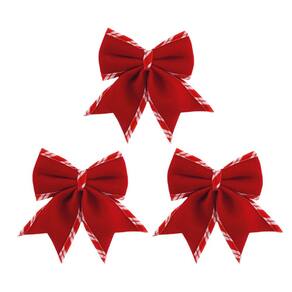 03 Laços Natalinos Veludo Vermelho Borda Candy 9x10cm