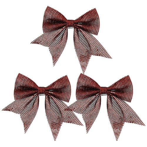 Jogo 3 Laços Telado Glitter Lantejoula Vermelho Natal 10cm