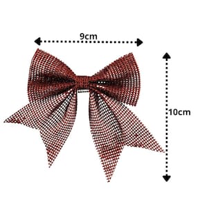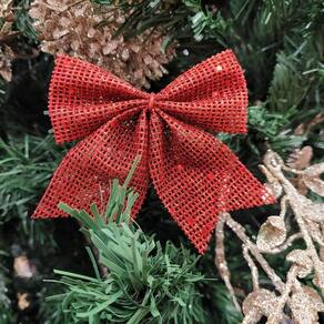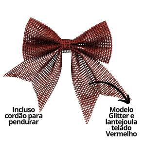 -03 Unidades Laço Telado com Glitter e Lantejoulas Vermelho – 10cm x 9cm com Cordão para Fixação