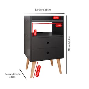 Conta com duas amplas gavetas que irão lhe auxiliar a deixar tudo em seu devido lugar. Também possui nicho e um amplo tampo, perfeitos para acomodar itens de uso diário e decorativos.