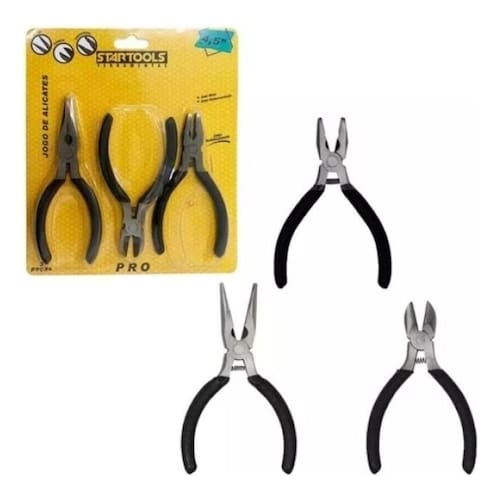 Jogo 3 Mini Alicates 4,5 De Precisão Durável Perfeito para trabalhos de precisão em eletrônica, artesanato, hobby, montagem e pequenos reparos. Composto por 3 alicates de 4.5 polegadas (bico meia cana, corte diagonal e universal), oferece versatilidade e praticidade no dia a dia. Fabricados em aço carbono de alta qualidade, garantem resistência e durabilidade, enquanto a mola de retorno facilita o uso contínuo, reduzindo o esforço. Os cabos emborrachados proporcionam conforto e firmeza na pegada, mesmo em usos prolongados. Compacto, leve e funcional, é um kit indispensável para profissionais e entusiastas que valorizam precisão e desempenho. Especificações: Dimensões Alicates: 11 cm altura (cada) Material: Aço Carbono e PVC Cor: Preta Peso Kit: 200g