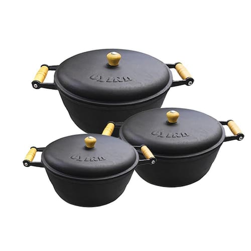 Jogo 3 Panela Caçarola Ferro Com Alça Madeira Com Tampa Nº 2
