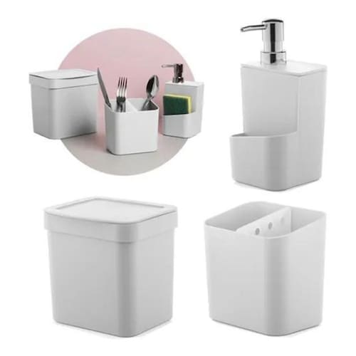 Itens que acompanham: - escorredor de talheres: axlxc 12,4 x 9 x 12,49cm - et 500 - lixeira trium 2,5l axlxc 17 x 14,6 x 16,6cm - lx 500 - dispenser para detergente: 650ml - axlxc 20 x 10,5 x 10cm - dt 500 Marca: Não Informado