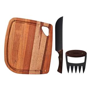 Coteúdo: 01 Faca Para Churrasco Aço Inox 01 Garra Para apoio Aço Inox 01 Tábua Madeira Para Churrasco