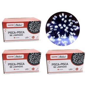 Conteúdo da embalagem: 03 unidades Pisca Pisca 100 Lâmpadas LED Branco Quente 8 Funções 127V - Master Christmas