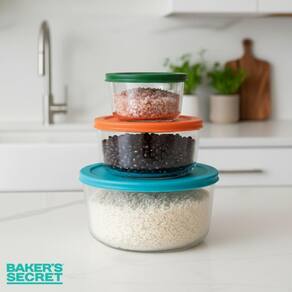 O jogo com 3 potes herméticos da Bakers Secret é a escolha perfeita para quem busca praticidade e segurança no dia a dia.