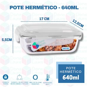 O Pote de Vidro com Tampa Hermética é ideal para quem busca praticidade, conservação e segurança no armazenamento de alimentos. Feito em vidro borosilicato resistente, ele pode ser levado ao forno, micro-ondas (sem tampa) e freezer, oferecendo versatilidade para o dia a dia.