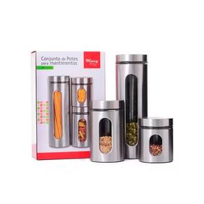 Jogo 3 potes tampa rosca para mantimentos vidro e aço inox Jogo 3 potes tampa rosca vidro e aço inox - alimentos frescos e organizados