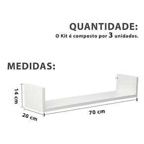 Este jogo de prateleiras em formato U é ideal para decorar e organizar qualquer ambiente da sua casa. Feito em MDF branco fosco de 15mm de espessura, possui um design moderno e minimalista que combina com diversos estilos de decoração. O jogo contém três prateleiras que podem ser instaladas na parede com suportes invisíveis e buchas inclusos.