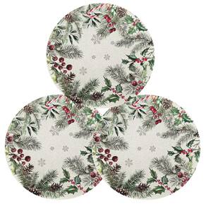-03 unidades Sousplat Natal Decorado Estampa Pinhas Folhagens e Berrries 33cm - Magizi