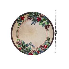 Estampa Encantadora: Cada sousplat apresenta uma estampa delicada de pinhas, folhas e berries, evocando a sensação acolhedora da temporada de Natal.
