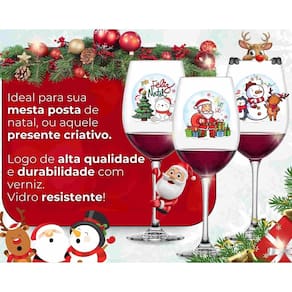 Feitas em vidro de alta qualidade, as taças são duráveis e possuem um design decorativo com estampas personalizadas de natal, sendo ideal para qualquer decoração de mesa posta, ou aquele presente criativo.