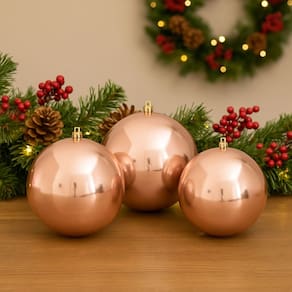 Transforme sua decoração com elegância e brilho. A bola rosê gold é o detalhe perfeito que faz toda a diferença na sua celebração natalina!