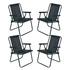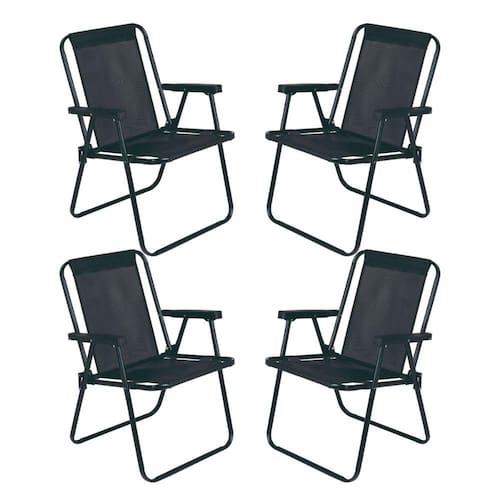 Jogo 4 Cadeira Alta Preta MOR Dobrável Reforçada até 110kg Praia Varanda Camping Jardim