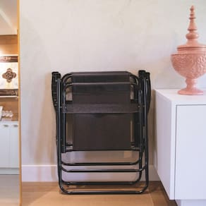 Dobrável e fácil de carregar, a Cadeira Alta é prática e confortável, ideal para salas de estar, varandas, parques e campings. Muito resistente, suportando até 110 kg, tem estrutura em tubos de aço com pintura epóxi a pó. Com visual moderno, tem a tela em polietileno. Já os apoios para os braços são em plástico polipropileno. Para guardá-la, basta dobrar. Não ocupa muito espaço, podendo ser colocada em cantos e lugares estreitos. Versátil e funcional, é um charme na decoração.