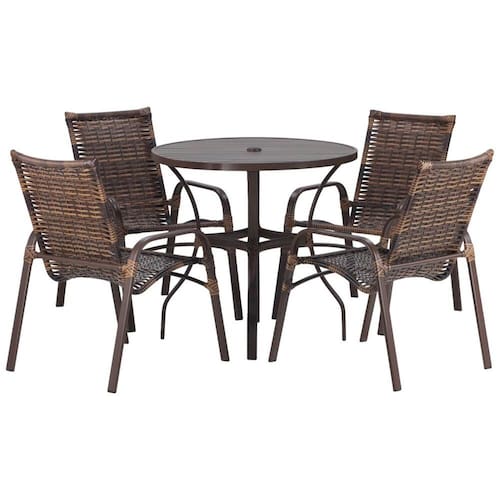 - Mesa Roma 100cm Diâmetro com Furo Central Acabamento da Estrutura: Pintura Altura do assento até o chão: 40 cm Ambiente Principal: Jardim e Varanda Apoio para Braços Estofado: Não codigo_ean: 7900288255907 Cor: Argila Cor do Produto: Argila Escala de Brilho: Fosco Estrutura do Assento: Alumínio Estrutura do Encosto: Alumínio Giratória: Não Itens Inclusos: 4 Cadeira e 1 Mesa Linha ou Coleção: Emily Marca: Trama Moveis Material da Base: Alumínio Necessita Montagem: Não Origem do Produto: Nacional Peso: 15 kg Possui Apoio Para os Pés: Não Possui Rodízio: Não Recomendações de Uso, Manutenção e Limpeza: A cadeira Emily foi desenvolvida para uso em áreas externas, podendo ficar exposta ao sol e à chuva sem comprometer sua funcionalidade. Utilize-a sempre em superfícies planas para maior estabilidade e evite pular, se jogar ou realizar movimentos bruscos sobre o produto. Respeite o limite de peso indicado pelo fabricante e, ao movimentá-la, não arraste sobre pisos ásperos para não danificar a estrutura.A limpeza deve ser feita com pano macio levemente umedecido em água para retirar poeira e sujeiras leves. Para manchas mais resistentes, utilize sabão neutro diluído em água, aplicando sempre com pano macio. Não use produtos abrasivos, cloro, solventes, esponjas de aço ou escovas de cerdas duras, pois podem comprometer o acabamento do produto. Resistente à Chuva: Sim Revestimento do Assento: Fibra Sintética Revestimento do Encosto: Fibra Sintética Suporta Até (kg): 170 kg Tipo de Assento: Fixo Tipo de Encosto: Fixo Marca: Não Informado