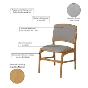 AS IMAGENS SÃO MERAMENTE ILUSTRATIVAS E PODEM SOFRER VARIAÇÕES DE COR E PEQUENOS DETALHES DE ACORDO COM O SEU MONITOR, ILUMINAÇÃO DO AMBIENTE E ATÉ MESMO A SUA PERCEPÇÃO VISUAL.Jogo 4 Cadeiras de Jantar FlorenÃa Jequitibà Natural Encosto em Linho Tecido Premium Linho Cinza