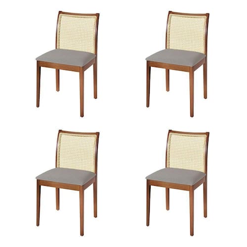 AS IMAGENS SÃO MERAMENTE ILUSTRATIVAS E PODEM SOFRER VARIAÇÕES DE COR E PEQUENOS DETALHES DE ACORDO COM O SEU MONITOR, ILUMINAÇÃO DO AMBIENTE E ATÉ MESMO A SUA PERCEPÇÃO VISUAL.Jogo 4 Cadeiras de Jantar Juliana Jequitibà Terra em Madeira MaciÃa Encosto Palha Linho Cinza