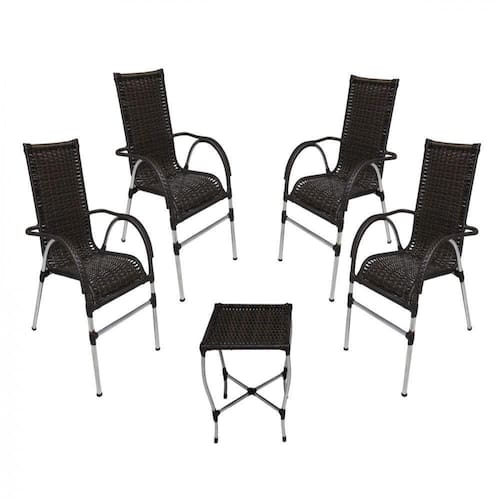 Jogo 4 Cadeiras E Mesa Para área E Jardim Preto ATENCAO: consulte o custo de envio. ITENS INCLS: 04 Cadeiras Venus em aluminio 01 Mesa de centro Venus em aluminio
