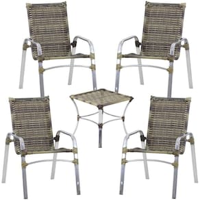 Jogo 4 Cadeiras Emily E Mesa Garden Em Alumínio Trama Capuccino