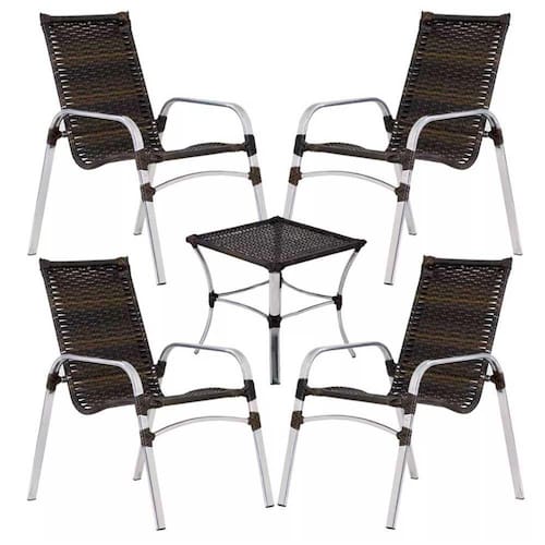 Jogo 4 Cadeiras Emily e Mesa Garden em Aluminio Para Area, Piscina, Jardim Trama